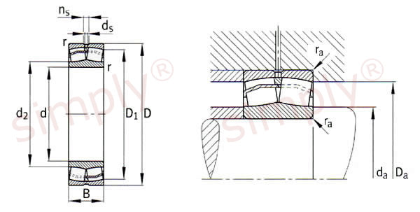 Spherical Roller Bearings: These bearings have two rows of barrel shaped (spherical) rollers which run on a common spherical outer and inner raceway, they are inclined at an angle to the bearings axis. Their design offers many features such as self alignment, insensitivity to misalignment, tolerance to heavy radial and axial loads etc. They are manufactured with in both parallel and tapered bore variants. Benefits: High radial and axial loads, misalignment, taper and parallel bore options |
