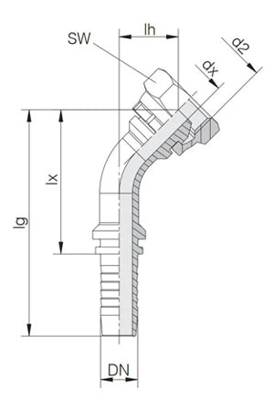 FLEXEQUIP/VOSS Female Two Piece Hose Fitting with 45 Degree Angle and Slip Nut: These hose fittings are widely used fitting in the UK and Ireland, ideal for agricultural and standard hydraulic applications. Designed with a BSP thread and a 60 degree tapered cone, it meets ISO 12151-6 (ISO 8434-6) standards, ensuring reliable, leak-free connections. Precision-engineered for perfect alignment between fittings and couplings, this fitting delivers exceptional durability, assembly reliability, and versatility. Built on decades of expertise, it guarantees efficient hydraulic system performance by preventing leakage and ensuring long-term functionality.