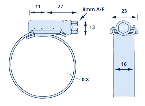 JCS HTM27 304 Stainless Steel Hi-Torque Hose Clip Adjustment Range 20-27mm Band Width 16mm