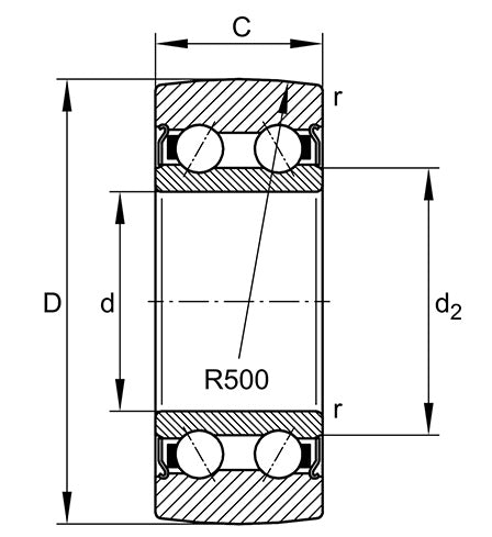 | R (Radius of outer ring outside profile) | = | 500 mm |