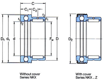 Needle Roller / Ball Thrust Combination: Of a separable design the needle roller and cage assembly with the outer ring and housing washer, the ball and cage thrust assembly can all be mounted separately. They are able to support heavy single direction thrust loads in addition to radial loads, they also permit relatively high speed operation. |
