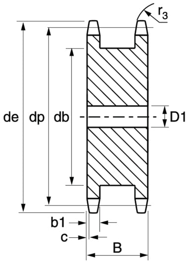 Pilot Bore Double Simplex Sprockets: Small sprockets are usually manufactured from C45 Steel or GG22 close grain cast iron. These taper bore double simplex sprockets accept tapered locking bushes in a wide variety of shaft sizes to allow the end-user to easily fit the sprocket to the shaft with minimal effort and no machining.